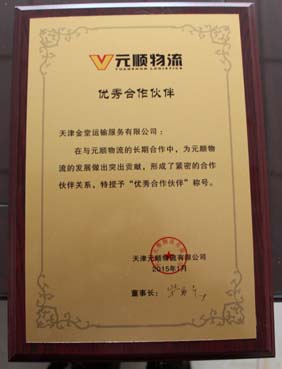 荣获2015年1月荣获元顺物流优秀合作伙伴荣誉